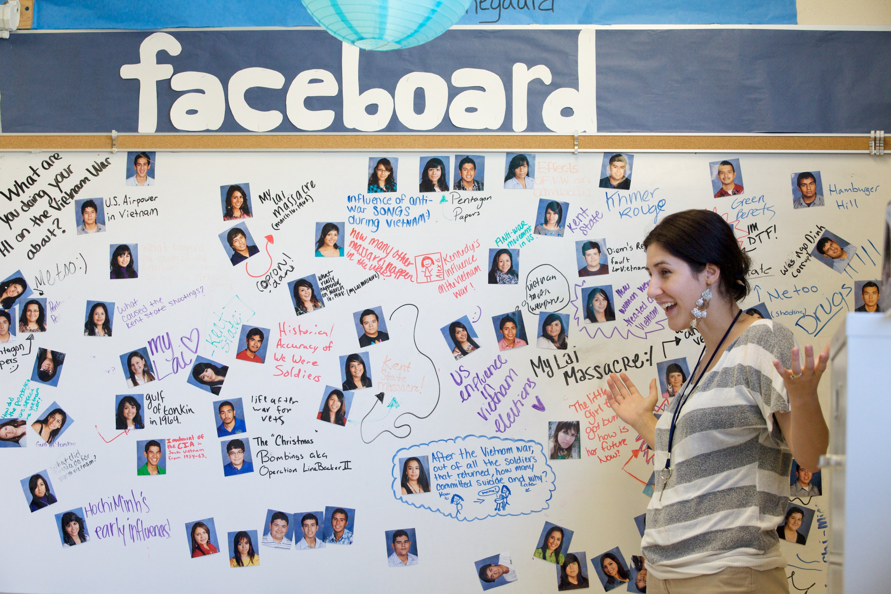 Despite the low-tech nature of Faceboard, students really dig it. They love the ironic connection to the social media site they live on and they are always eager to participate when we use it in class. One note of caution: some students really freak out about having their school picture posted for all to see. I allow them to bring in another picture of their choice and, as long as it is appropriate, crop it to size and replace the original picture.