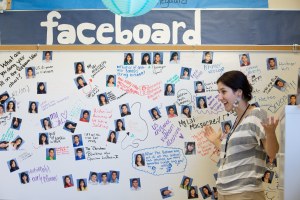 Faceboard set up for students to share their research topics and find others writing similar papers.