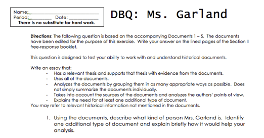 One of the tricky objectives to cover at the beginning of the year is to teach your students how to write content specific essays (ex. Document Based Questions (DBQs), Source Based Questions, Lab Reports, Personal Narratives, etc.) using texts from your content (primary sources, evidence gathered from a lab, fictional texts, etc.). My favorite way of introducing the format I want students to use is through a non-content related topic. For example, in my World History class students had to write essays (DBQs) using primary sources and so the first essay we tried was a DBQ on me that used primary sources not from history but from my own life. This serves the dual purpose of 1) teaching my students how to write using the correct format and 2) introducing more of myself to the class via an important academic skill – feeding two birds with one hand. I can uses the text to teach my students annotation and careful reading as well as the format I want them to use to write their essays. When we are finished, I show them an exemplar response I wrote and have them compare their essays to both the exemplar and to the official rubric we will use throughout the year.