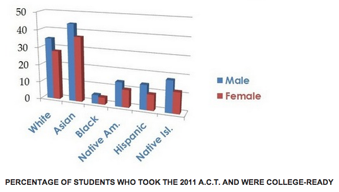 I came across this super-upsetting graph in an newsletter from the Department of Education (called Teaching Matters, you can sign up for it here). This data comes from a new report from the National Center for Education Statistics (NCES) on gaps in access and persistance in higher education (for full report, click here) I’ve found the ACT to be such a line in the sand in terms of college readiness and the chart above clearly illustrates the race and gender discrepancies in scores.