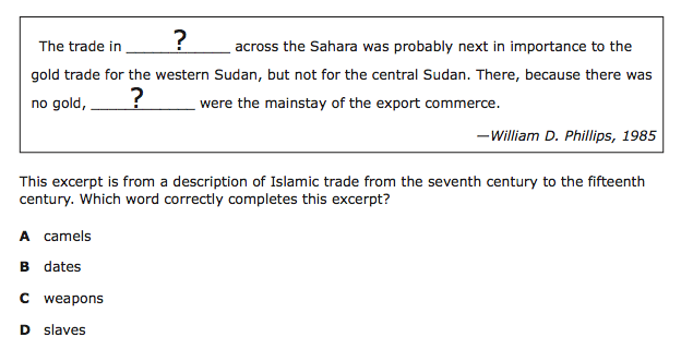 *the official answer to the history question above is “A. camels” . . . don’t ask me to explain it, I’m just a history teacher