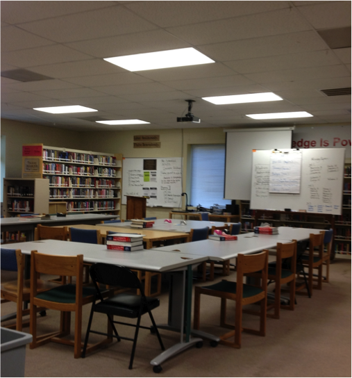 I am the librarian and also the senior English teacher. When students are not in Govt, they are in English so there is no period of the day when the library is not housing a classroom. Unfortunately, that means our students do not currently have access to the library or the books. We are working on trying to move the Study Hall that is held in the library so that the library can at least be open during Study Hall. We are extremely space restricted which poses a great many challenges.